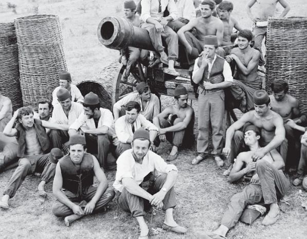 a magyar néphadsereg karórás janicsárja a forgatás szünetében (korabeli werkfotó)